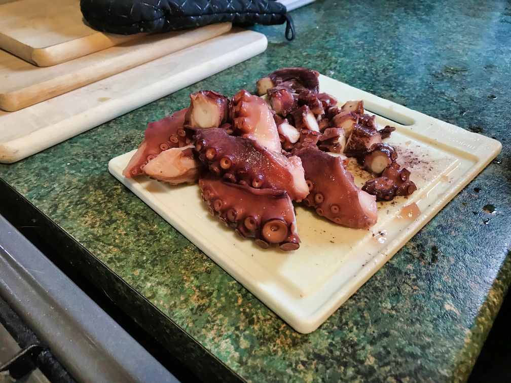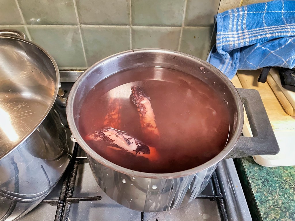 Last year I didn’t include a photo of the octopus being cooked before preparing the Octopus rice, so here it is: