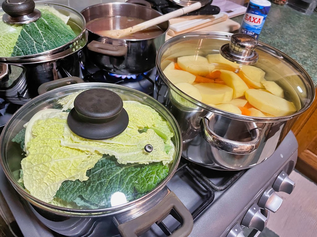 We will cook around two to three times the amount of cod and vegetables that we need for the actual meal. The reason for this is that the starter for the next day (roupa-velha) is made from the left-overs of the Christmas eve’s dinner. So essentially, we have to make sure we have plenty of left-overs!