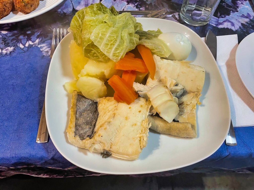 As mentioned, we will follow two separate traditions. From my family’s side, originally from the north of Portugal (Porto), we typically have boiled salted cod with vegetables (cabbage, onion and carrots), seasoned with olive oil, vinegar and garlic. From my partner’s side, the meal typically consists of octopus rice, accompanied with salted cod fishcakes (“bolinhos de bacalhau”) and pan-fried octopus (“filetes de polvo”).
