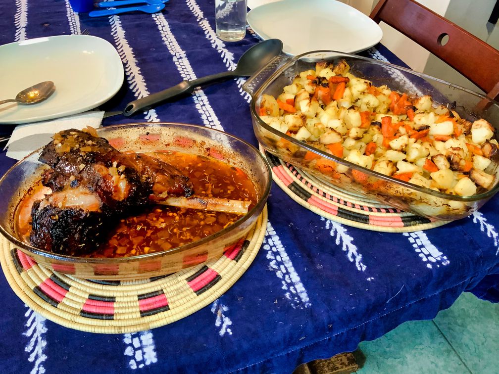 Usually on the 25th of December we eat a roast (turkey, lamb, goat or pork). We went for a lamb roast. It was seasoned with lemon, rosemary, garlic, paprika, olive oil and salt for four days.
