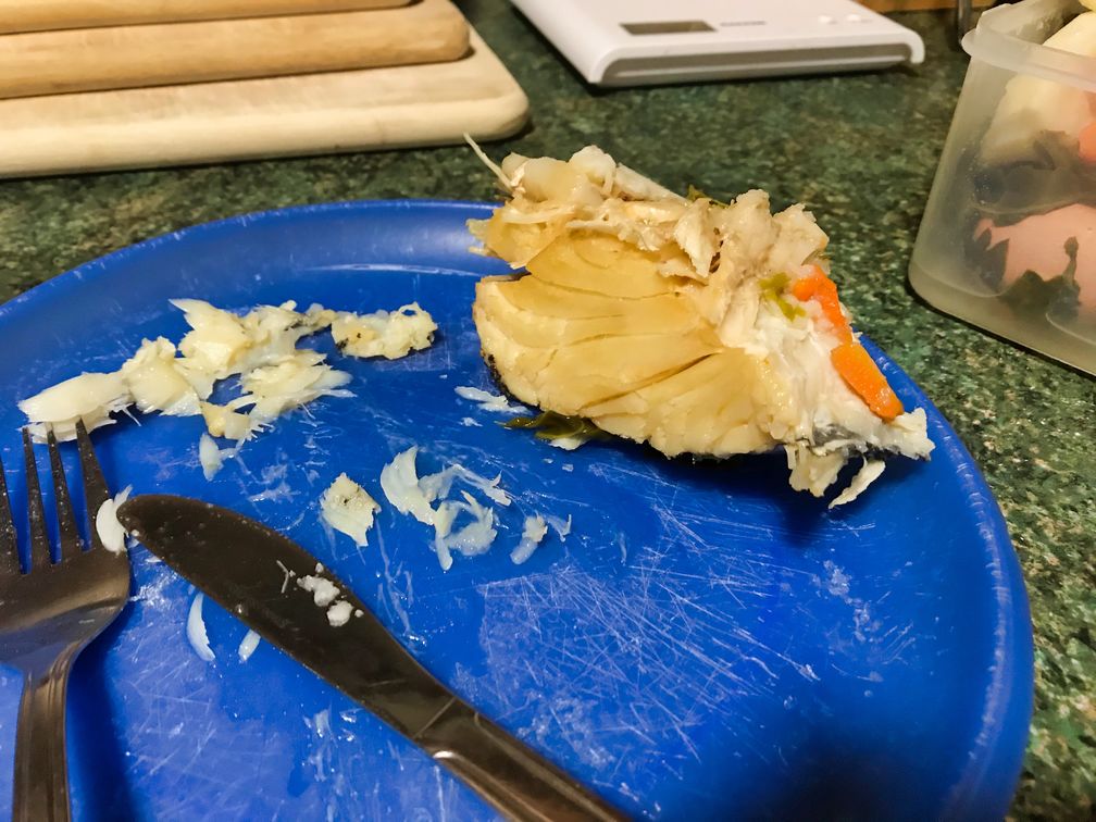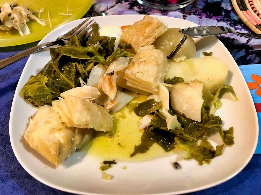 And here it is: ready to tuck in. As you can see, I like my salted cod with a very generous amount of olive oil and vinegar.