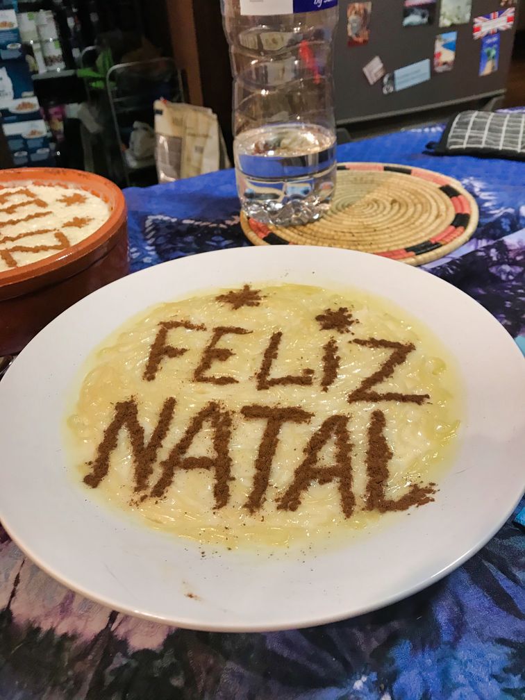 A cinnamon decoration is a must, here shown with a festive “Feliz Natal” (Merry Christmas).